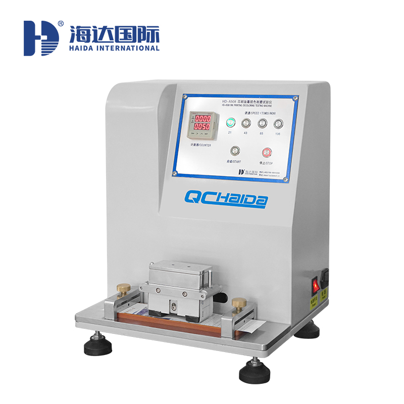 HD-A508B印刷油墨脱色耐磨试验仪主要适用于印刷品印刷墨层耐磨性测试。将标准尺寸的摩擦纸包于摩擦头,以规定的速度、压力等对试样表面进行摩擦,观察试样墨层脱落情况。