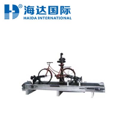 HD-1049 自行车动态行走耐用性试验机产品简介: 将成车附一定荷重,固定于本机之上,将机器开动,使成车以一定速度行驶,并通过一定的障碍物,一段时间后,视察成车结全处有无破损或分离。