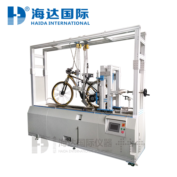 儿童自行车动态路况试验机产品简介: 本试验机适用于自行车成车路试及煞车性能测试,设计制造符合各国规范测试要求,由两个滚轮直径组成,并依规范装置跳板及于成车座管脚踏把手货架各装载荷重固定于本仪器。